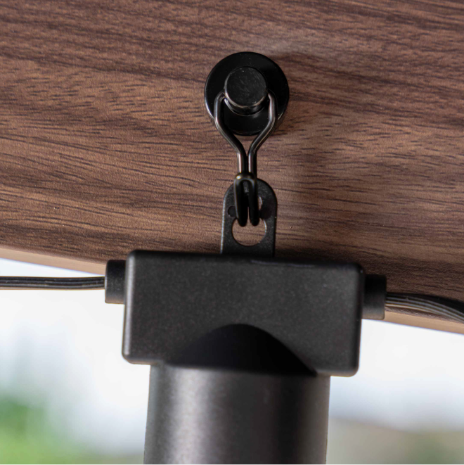• Magnetic hooks included to suspend patio lights or other accessories.