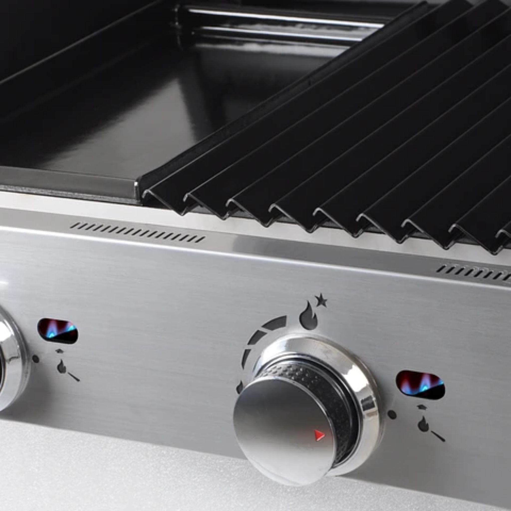 The Z-shaped design of the grates in the Block Gas grill enables optimal heat transfer to your food, preventing juices and grease from coming into direct contact with the flame and reducing the risk of flare-ups during cooking. Additionally, the enameled finish facilitates easy cleaning after each grilling session.