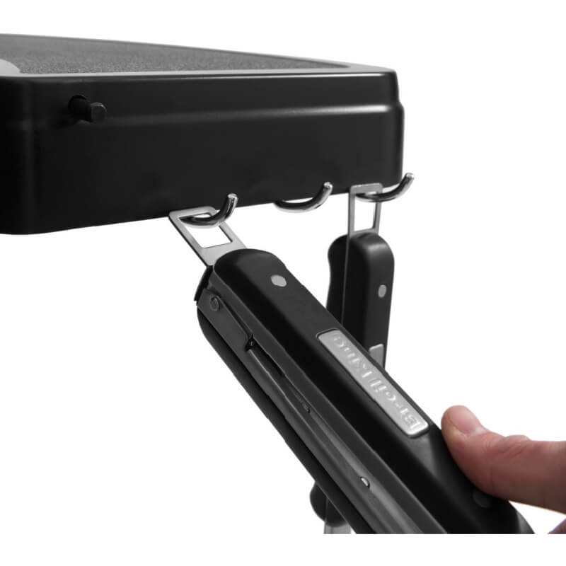 - Removable side shelves with accessory hooks for an expanded cooking space and your grilling tools within arm’s reach.Â