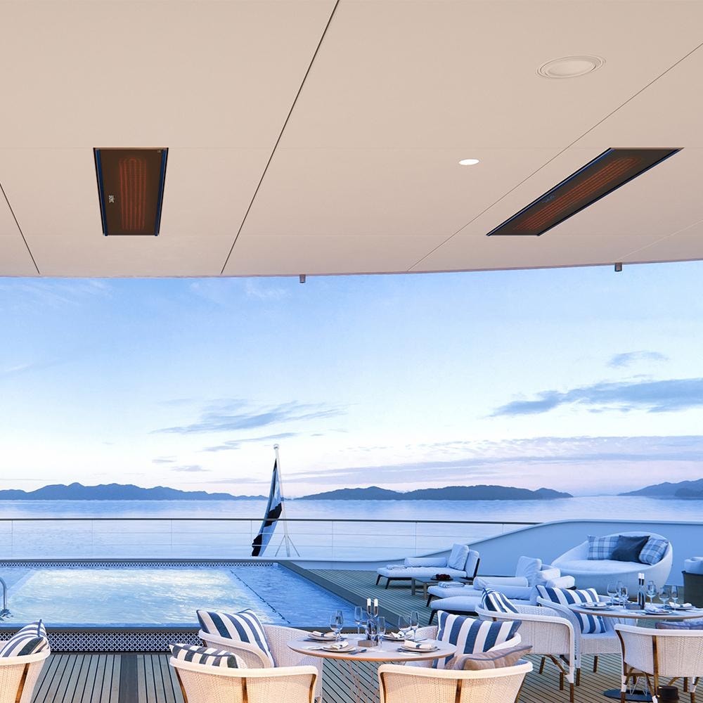 Bromic Heating leads the market in supplying your outdoor living space with radiant heating solutions that offer both superior patio heating performance and cutting-edge designs. The Platinum Smart-Heat Electric Marine heater series of electric outdoor heaters seamless integration of modern clean lines, minimalistic designs, and quality materials. Bromic achieves innovation styling and technical performance. The ceramic medium allows even distribution of 3400 watts (7,900 BTU) of heat across 108 sq. feet of area. The external body of the electric heater is made with AISI316 stainless steel, which is weather proof and corrosion resistant. This infrared patio heater features a pivot arm bracket, allowing you to easily adjust the flow of heat for better, custom directional heating. The Platinum 3400 Smart-Heat Electric Marine heater can be wall or ceiling-mounted and wired into smart system controls to fit custom heating preferences. It also is the ideal solution to enrich the comfort experience for owners of coastal residences, superyachts, and guests on cruise ships. Command your backyard while entertaining your family and friends with the best outdoor heating on the market.