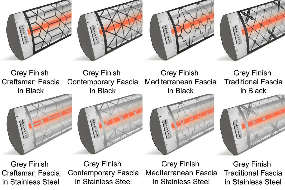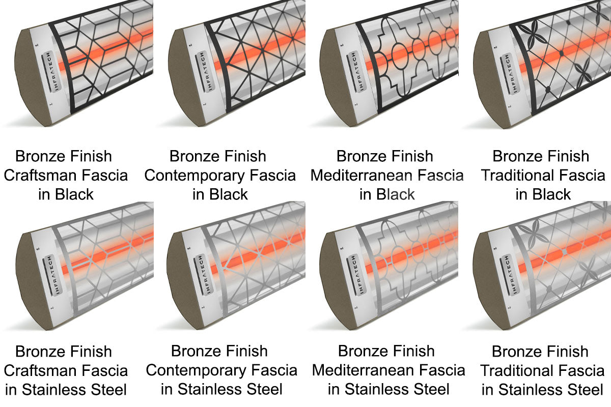 • Incredible Style Solutions. Choose the color of your Infratech C Series from brushed stainless steel, standard colors, or custom color finish options. Upgrade your unit with the Motif collection of decorative, laser-cut metal fascias.