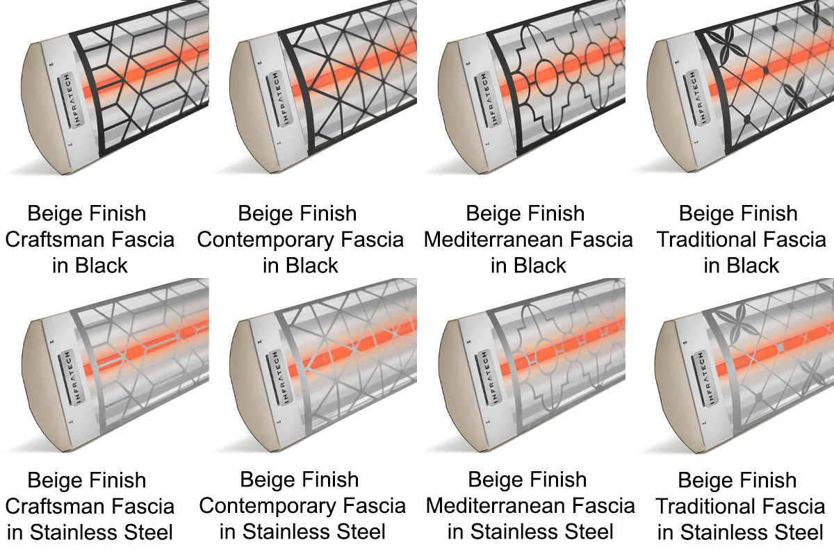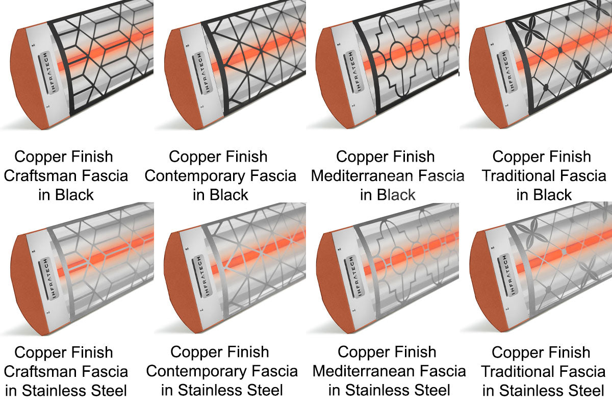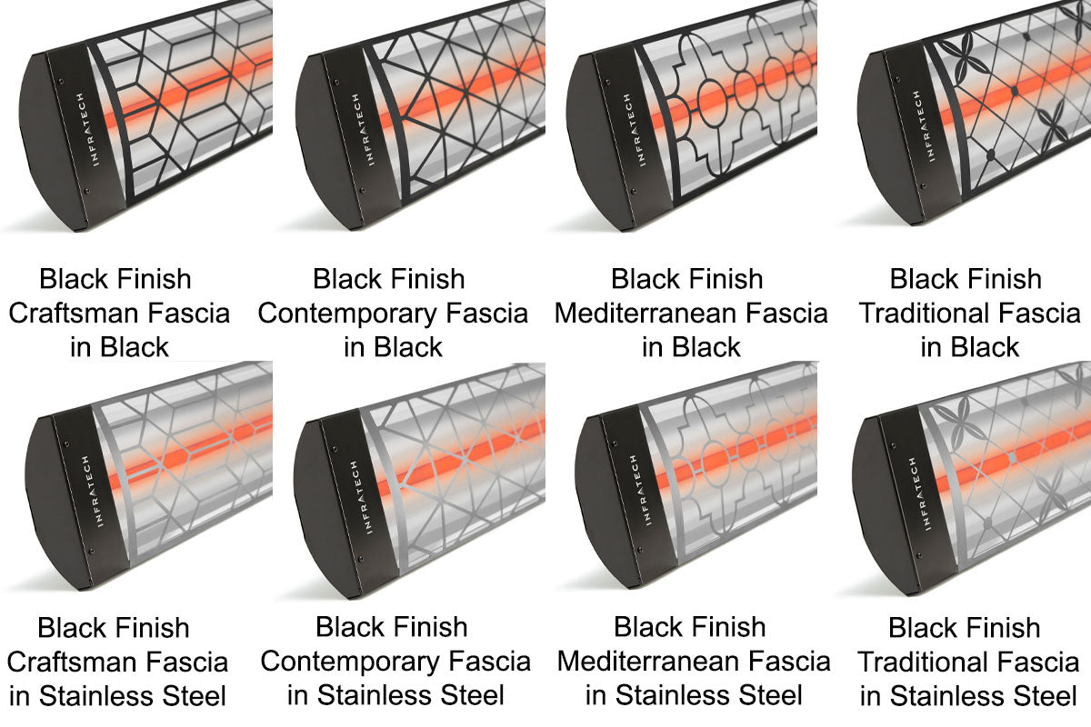 - Custom Look. Choose the color of your Infratech CD-Series from brushed stainless steel, standard colors, or custom color finish options. Upgrade your unit with the Motif collection of decorative, laser-cut metal fascias.