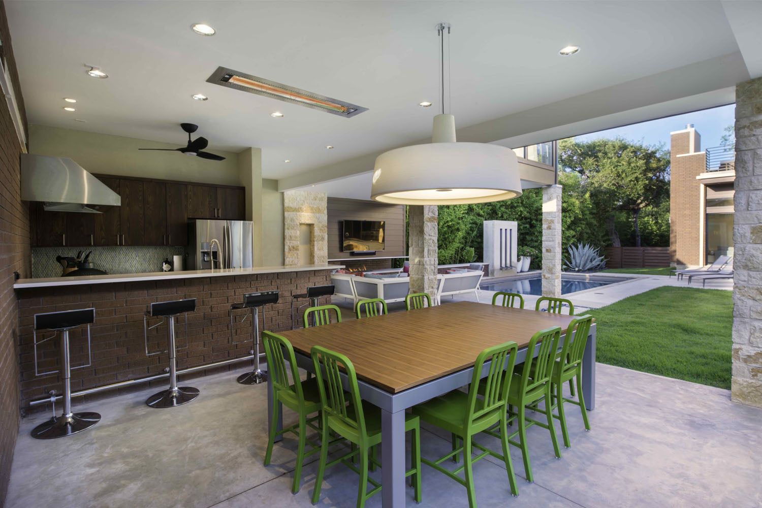 Ceiling Pole Mount: (click here for this Accessory) Ceiling Drop Pole installation is the top choice for outdoor living spaces with high, vaulted and uneven ceilings allowing heaters to be installed and positioned in different directions. Available in different colors.