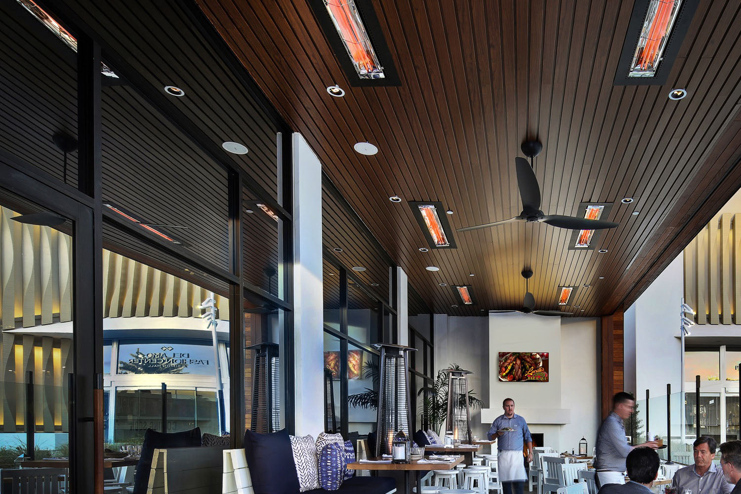 Powerful, innovative, and aesthetically appealing Infratech WD Series Outdoor Heater perfectly blends into any environment thanks to its classic and elegant design. WD Series dual-element heater provides clean, condensation-free, odorless powerful heat. The radiant technology provides uniform and precise heat distribution, so the warmth will not “blow away” in windy conditions, such as terraces, patios, and outdoor areas of the restaurant. Infratech WD-Series Heaters are ideal for premium outdoor heating applications large-scale coverage needs and spaces with 7-12 foot mounting heights. WD Series heaters are designed for wall or ceiling mounting. The unit comes with swivel mounting brackets for easy installation. WD-Series Outdoor Heater looks even better recessed into a flush mounted into a non-sloped ceiling using an optional flush mount frame. Other optional mounting options include ceiling mounting with drop poles for high or uneven ceilings and freestanding with a special order standalone floor pole. Infratech WD Series are from durable 304 stainless steel for years of exterior use and high-quality quartz element with approximately 5,000 hours of use for efficient heating to keep you comfortable. Choose from brushed stainless steel, standard colors, or select a custom color of your choice for your Infratech WD-Series Patio Heater. Install your unit with optional Duplex/Stack Switch or optional Custom Controls (Solid State Control Packages, Home Management Systems, Universal Control Packages) for effective and comfortable control. Proudly made in the USA offering 3 years warranty. Enjoy ambient electric comfort heat with Infratech WD Series 61″ 6000Watt 28.8 Amps 208V Outdoor Electric Heater.