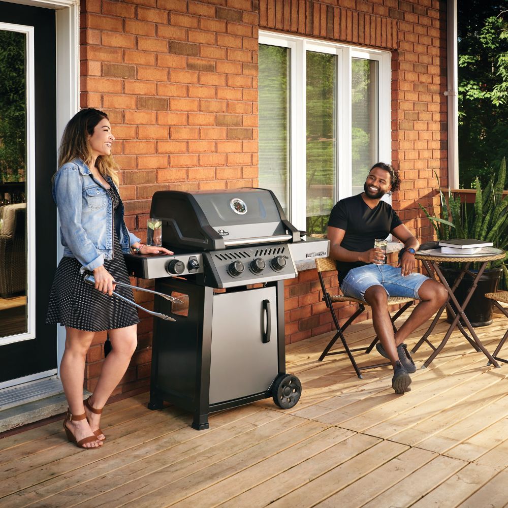 • The Freestyle 365 barbecue grill features 3 main burners, a range side burner and 365 in² (825.5 cm²) of total main grilling area