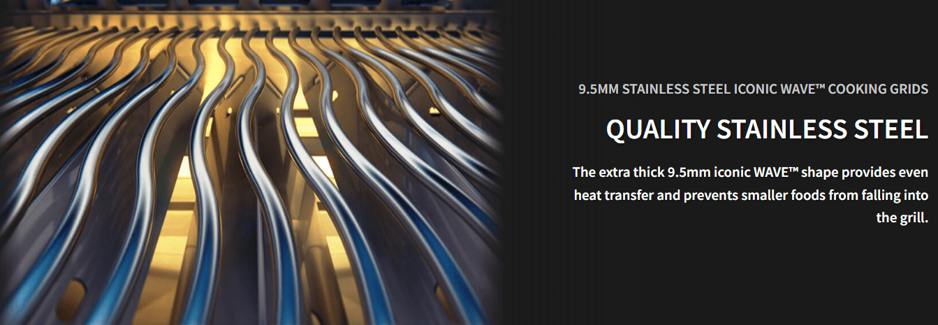 - 7.5 mm Stainless Steel Iconic WAVEâ„¢ Cooking Grids