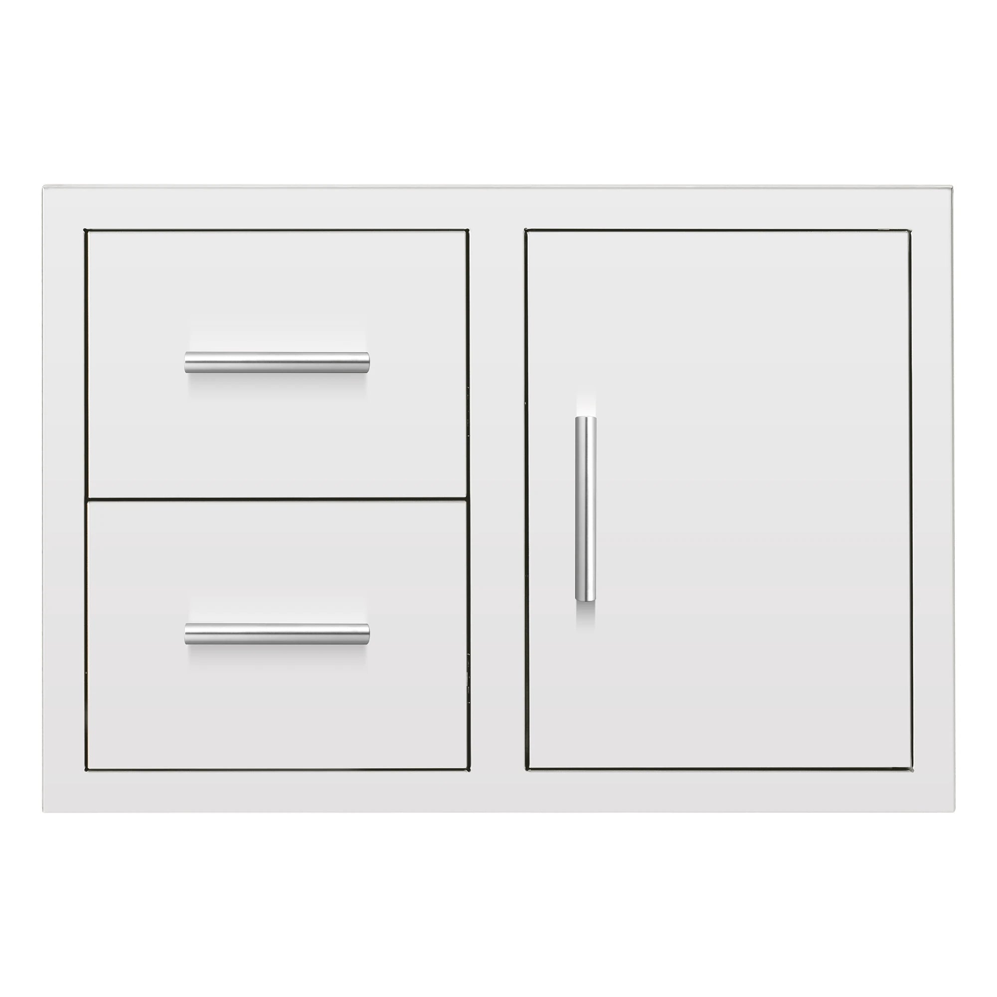 Bring order and functionality to your outdoor kitchen with the Summerset 33-Inch 2-Drawer & Door Combo. Designed for serious outdoor entertainers and backyard chefs, this smart combo includes two soft-close storage drawers and a weather-sealed access door — giving you the ideal mix of organization and utility access. Built from durable #304 stainless steel with a clean hingeless design, this unit is resistant to the elements and easy to maintain. With heavy-duty tracks, smooth ball-bearing slides, and sleek Summerset bar handles, this is a must-have upgrade — all backed by the industry-leading Gold Standard Lifetime Warranty.