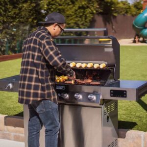 Elevate your outdoor experience with our robust stainless-steel 2-burner grill: Meticulously crafted for enduring gatherings. Expansive 320 sq. in. primary cooking surface and a 130 sq. in. warming rack. Two precision-engineered stainless steel main burners deliver a combined 24,000 BTU output. Seamlessly welded stainless-steel lid with a built-in window for food monitoring. Create lasting memories…